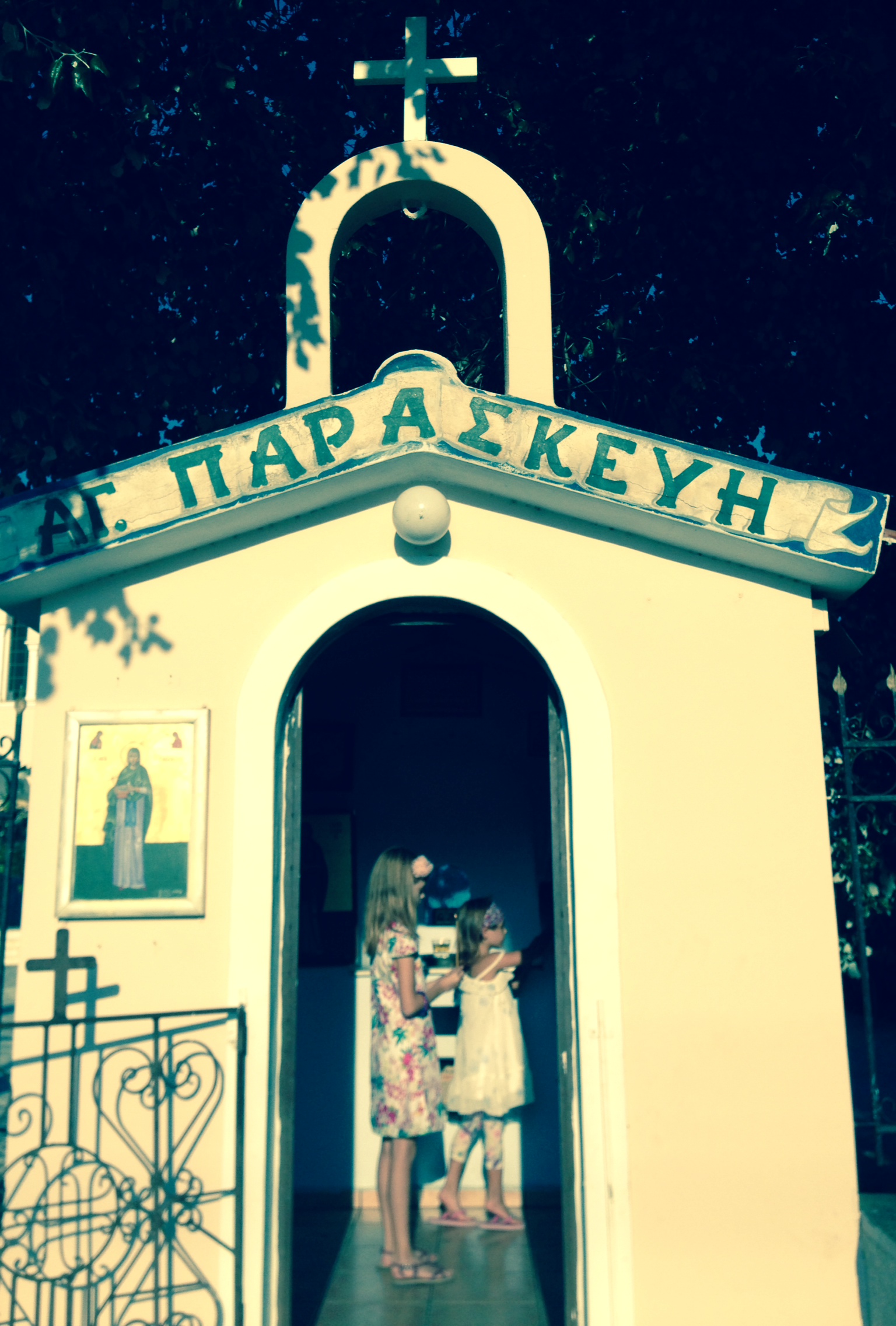 I was at a loss as to how to make them feel better so off we went to light a candle in the little shrine outside of our local Greek Orthodox Church, St Constantinos.